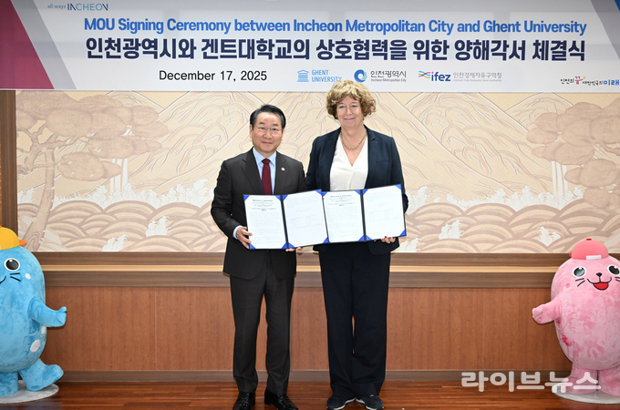 겐트대학교와 인천시는 17일 인천시청에서 해양·바이오·환경 연구 및 인재 양성을 위한 상호협력 업무협약(MOU)을 체결했다.