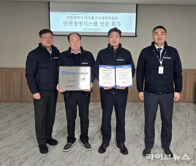 중소벤처기업인증원은 인천시 미추홀구시설관리공단이 인권경영시스템(HRMS) 인증 심사를 통과했다고 22일 밝혔다.