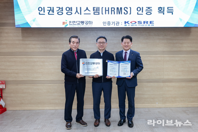 중소벤처기업인증원은 인천교통공사가 인권경영시스템(HRMS, Human Rights Management System) 인증을 취득했다고 30일 밝혔다.
