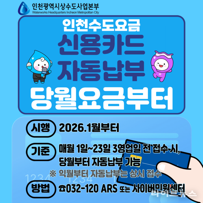 인천시가 새해부터 수도요금 신용카드 자동납부 제도의 편의성을 대폭 강화하며 시민 중심 행정에 속도를 내고 있다.