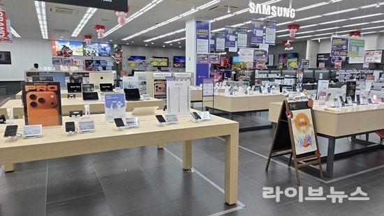 매장 내 애플 샵인샵에서는 아이폰, 아이패드, 맥북, 애플워치, 아이맥 등 애플 전 제품을 직접 체험하고 구매할 수 있다. 휴대폰 구매 고객을 대상으로 제휴카드 혜택과 추가 할인 프로모션도 함께 적용된다.