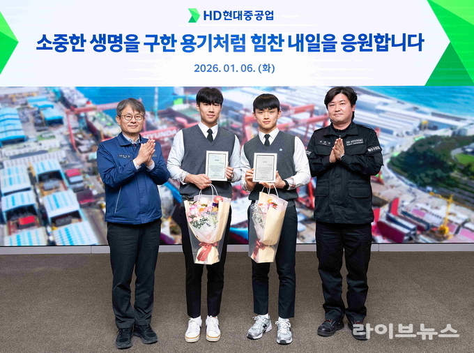 HD현대중공업은 2026년 1월 6일 80대 어르신의 생명을 구한 두 고등학생을 초청해 표창장 수여와 장학금을 전달했다.