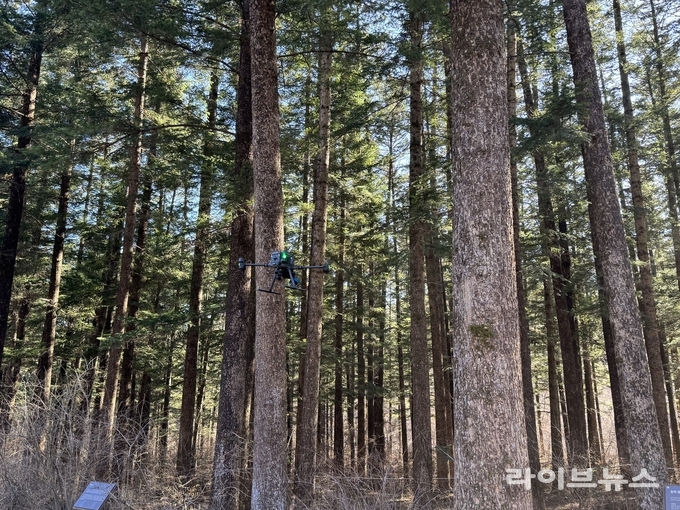 이날 시연된 기술은 숲속에서 드론이 나무 등 장애물을 인식해 회피화고, 나무 기둥(수간) 및 하층 식생을 정밀하게 스캔하며 비행하는 ‘임내 자율주행(Autonomous Internal Flight)’ 기술이다.