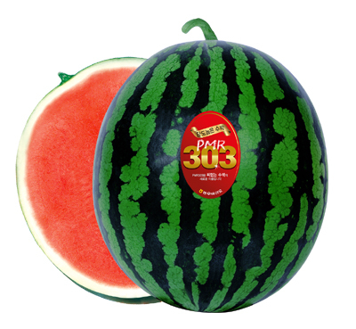 피엠알303 수박은 흰가루 내병계 품종이며 순뭉침, 순부러짐 증상이 덜하여 재배 용이성이 아주 우수한 품종이다. 호피 단타원형 적육계 품종이며 외관이 수려하며 과 비대력과 과형 안정성이 우수한 품종이다. 당도가 높고 육질이 치밀하여 아삭한 것이 특징이며 상품성이 우수하여 농가 재배 만족도가 높은 품종이다. 피엠알303 수박은 현재 논산, 부여, 익산 등 3배체 수박 재배 지역에 널리 재배 되어지고 있다.