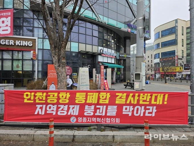 김정헌 인천 중구청장이 영종지역 주요 단체들과 함께 인천국제공항 통폐합 추진에 반대 입장을 공식화하며 즉각 철회를 촉구했다.