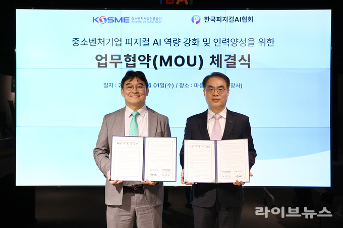 중진공은 1일 경기도 성남시 마음AI 사옥에서 (사)한국피지컬AI협회(회장 유태준)와 ‘중소벤처기업 피지컬 AI 역량 강화 및 인력양성을 위한 업무협약(MOU)’을 체결했다고 밝혔다.