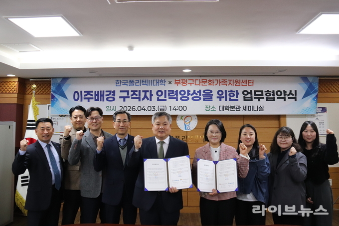 한국폴리텍대학 인천캠퍼스(학장 직무대리 최민환, 이하 인천폴리텍)는 3일 부평구다문화가족지원센터와 업무협약(MOU)을 체결하고, 이주배경 구직자를 위한 맞춤형 직업교육 협력체계 구축에 나섰다.
