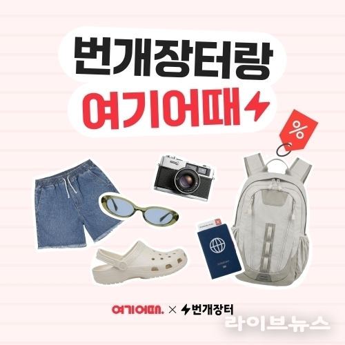 대한민국 대표 여행ㆍ여가 플랫폼 여기어때(대표 정명훈)가 테크 리커머스 플랫폼 번개장터(공동대표 강승현ㆍ최재화)와 제휴 프로모션을 진행한다. 이번 프로모션은 여행과 중고거래 분야를 대표하는 플랫폼인 만큼 고객들이 두 플랫폼을 자유롭게 오가며 이용할 수 있도록 기획한 이벤트다.