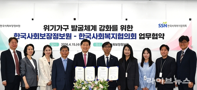 한국사회복지협의회(회장 김현훈)와 한국사회보장정보원(원장 김현준)은 지난 15일 위기가구 발굴 활성화 및 지역사회 복지 안전망 강화를 위한 업무협약을 체결했다고 밝혔다.