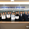 국내 종자기업 NH농우바이오(대표이사 양현구)는 2일 서울대학교 농업생명과학대학에서 장학금 전달식을 진행했다. 이날 행사에는 양현구 대표이사, 조병중 R&D본부장, 채원기 여주육종연구소장, 황인서 기획조정실장과 서울대 농업생명과학대학 강병철 학장 등이 참석했다. NH농우바이오는 2012년 5천만 원의 발전기금 기부를 시작으로 매년 1천만 원씩 서울대학교 발전기금에 출연해왔다. 2026년 현재 누적 기부금은 약 1억 9천만 원에 이른다. 이 기금은 대학원생 장학 지원 프로그램을 통해 미래 농업 분야 핵심 인재 양성에 활용되고 있다. 장학금은 작물생명과학과 원예생명공학 분야 대학원생을 대상으로 지원한다. 이 사업은 우수 대학원생의 연구 환경을 개선하고, 종자산업 및 첨단 농업기술 분야에서 전문성을 갖춘 인재 육성을 목적으로 한다. 올해 장학금은 서울대학교 농업생명과학대학 작물생명과학 전공 이영현, 박주원(박사과정) 학생과 원예생명공학 전공 김상중(박사과정), 이민재(석사과정) 학생에게 전달됐다. 양현구 대표이사는 “장학금이 학생들이 연구에 집중할 수 있는 기반이 되기를 바라며, 미래 농업 분야 핵심 인재로 성장하는 계기가 되길 바란다”고 말했다. NH농우