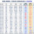 언론 통합 플랫폼이자 인터넷신문사 제보팀장을 운영 중인 더에이아이미디어는 3월 9일 NZSI INDEX 기반 시황 보고서를 발표했다. [편집자주] NZSI INDEX는 왜곡된 시장 정보에서 벗어나, 개인 투자자를 위한 공정하고 실질적인 투자 기준을 제시합니다. NZSI INDEX에는 미래를 설계할 수 있는 자본시장의 가능성이 담겨 있습니다. ★ 지수변경 : 1,000을 기준으로 종목 기여도 동일 반영 ★ 기 준 가 : 2024. 12. 20 / 1차 개편 : 2025. 04. 01 ★ 평가기준 : 20개 종목 X 5개 항목 (건전성, 안전성, 성장성, 위험도, 기대값) X 10등급 (A3 ~ D) 2026년 3월 9일 국내 증시는 큰 폭으로 하락했다. 코스피 지수는 전 거래일 대비 5.96% 하락한 5,251.87포인트로 마감했고 코스닥 지수 역시 4.54% 내린 1,102.28포인트를 기록했다. 거래대금은 코스피 33조 원, 코스닥 12조 3천억 원을 기록한 가운데 시가총액은 코스피 4,313조 6천억 원, 코스닥 595조 3천억 원 수준으로 축소됐다. 같은 날 미국 증시는 상승 흐름을 보였다. 다우존스 산업평균지수는 전 거래일 대비 0.50% 상승한 47