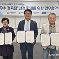 축산물품질평가원 경기지원(지원장 김기범)은 5일 축산기업중앙회 경기도지회·소비자교육중앙회 경기도지부와 함께 소비자가 믿고 이용할 수 있는 ‘우수 정육점’ 선정·확대를 위한 업무협약(MOU)를 체결했다고 밝혔다. 축산물품질평가원 경기지원청사(경기도 광교)에서 열린 협약식에는 경기지원장(김기범 지원장), 축산기업중앙회 경기도지회장(유상구 지회장), 소비자교육중앙회 경기도지부 회장(박명자 회장)이 참석했다. 축산물품질평가원 경기지원과 축산기업중앙회·소비자교육중앙회는 이번 업무협약(MOU)에 따라 경기도 관할 지역의 식육판매업소 중 △축산물 소비자 가격 조회 서비스 ‘여기고기’에 참여하는 업소를 대상으로 △축산물 이력제 이행실태 관리가 우수하고, △판매 진열된 소고기의 DNA 시료채취 검사 결과 합격한 업소에 ‘우수 정육점’을 선정할 예정이다. ‘우수 정육점’으로 최종 선정된 업소는 판매 진열대에 소비자들에게 홍보할 수 있는 ‘우수 정육점’ 판넬을 설치하고, 소비자가 쉽게 찾아볼 수 있도록 축산물품질평가원의 ‘축산유통정보’ 누리집 및 어플리케이션(앱)에서 표시할 계획이다. 축산기업중앙회 경기도지회 유상구 지회장은 “이번 MOU 체결로 경기도 내 우수한 축산물 판매업