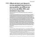 침 속 호르몬, 뇌파, 심장 박동 등 생리 지표 종합 분석 정적 활동은 여성, 동적 활동은 남성에서 두드러진 변화 나타나 성별 특성 고려한 반려견 교감 프로그램 개발 기초 자료로 활용 농촌진흥청 국립축산과학원은 경북대학교, 오산대학교와 공동 연구를 통해 반려견과의 교감 치유 활동이 사람에게 미치는 영향을 조사했다. 연구 결과, 활동 유형에 따라 남성과 여성의 반응이 차이를 보였다. 연구팀은 정적 활동과 동적 활동으로 나누어 대학생 13명(여성 6명, 남성 7명)을 대상으로 실험을 진행했다. 정적 활동은 쓰다듬기, 간식 주기, 이름 부르기, 포옹하기 등 접촉 중심의 활동이고, 동적 활동은 산책, 장애물 넘기, 원반 던지기 등 신체를 움직이는 활동이다. 연구진은 참가자들의 침 속 호르몬, 뇌파, 심장 박동 변화를 측정해 생리적·정서적 변화를 종합 분석했다. 참가자가 느낀 감정 상태와 활력 수준은 의미분별척도(Semantic Differential Method, SDM) 설문으로 평가했다. 침 속 호르몬 분석 결과, 반려견과의 교감 활동 후 긍정적 변화가 나타났다. 여성은 정적 활동 시 유대감과 관련된 옥시토신 수치가 41% 상승했고, 남성은 동적 활동 시 옥시토