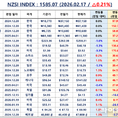 언론 통합 플랫폼이자 인터넷신문사 제보팀장을 운영 중인 더에이아이미디어는 2월 17일 NZSI INDEX 기반 시황 보고서를 발표했다. [편집자주] NZSI INDEX는 왜곡된 시장 정보에서 벗어나, 개인 투자자를 위한 공정하고 실질적인 투자 기준을 제시합니다. NZSI INDEX에는 미래를 설계할 수 있는 자본시장의 가능성이 담겨 있습니다. ★ 지수변경 : 1,000을 기준으로 종목 기여도 동일 반영 ★ 기 준 가 : 2024. 12. 20 / 1차 개편 : 2025. 04. 01 ★ 평가기준 : 20개 종목 X 5개 항목 (건전성, 안전성, 성장성, 위험도, 기대값) X 10등급 (A3 ~ D) 2026년 2월 17일 국내 증시는 설 연휴로 휴장하였다. 국내 시장이 멈춰 있는 사이 글로벌 시장은 제한적인 상승 흐름을 이어가며 유동성 중심의 장세가 유지되고 있음을 보여줬다. 전일 미국 증시는 워싱턴 데이 이후 재개된 거래에서 혼조세를 나타냈다. 다우존스 산업평균지수는 0.07% 상승한 49,533.19포인트, 나스닥 종합지수는 0.14% 오른 22,578.38포인트로 마감했다. 상승 폭은 제한적이지만 시장의 방향성은 여전히 상방을 유지하고 있다. NZSI