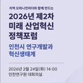 인천연구원은 오는 24일 오후 2시 인천연구원 대회의실에서 ‘제2차 인천 미래 산업혁신 정책포럼’을 개최한다. 인천연구원은 올 한 해 동안 산업 전환, 전략산업, 에너지, 연구개발(R&D) 등 주요 정책 의제를 순차적으로 다루는 정례 포럼을 운영할 계획이다. 이를 통해 연구 성과와 정책 현안을 연계하는 지속적인 논의 기반을 축적해 나간다는 방침이다. 이번 제2차 포럼의 주제는 ‘인천시 연구개발과 혁신생태계’다. 글로벌 공급망 재편과 기술 패러다임 전환 등 급변하는 대외 환경 속에서 인천시 과학기술 기반을 점검하고, 중앙정부 과학기술혁신 정책과의 정합성을 검토하는 데 초점을 둔다. 첫 번째 발제는 한국과학기술기획평가원 오현환 혁신전략본부장이 맡는다. 정부의 주요 과학기술혁신 정책 및 인천 혁신역량 제고를 위한 제언을 주제로 정부의 과학기술혁신 정책 방향과 국가 R&D 투자 구조, 전략기술 육성 기조를 설명하고, 지역 차원의 대응 과제를 제시할 예정이다. 이어 이정영 인천연구원 경제산업연구부 연구위원이 ‘인천시 연구개발 투자 현황’을 발표한다. 인천의 R&D 투자 구조와 산업별 연구개발 여건을 점검하고, 전략산업의 잠재력과 국가 연구개발사업