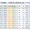 언론 통합 플랫폼이자 인터넷신문사 제보팀장을 운영 중인 더에이아이미디어는 1월 26일 NZSI INDEX 기반 시황 보고서를 발표했다. [편집자주] NZSI INDEX는 왜곡된 시장 정보에서 벗어나, 개인 투자자를 위한 공정하고 실질적인 투자 기준을 제시합니다. NZSI INDEX에는 미래를 설계할 수 있는 자본시장의 가능성이 담겨 있습니다. ★ 지수변경 : 1,000을 기준으로 종목 기여도 동일 반영 ★ 기 준 가 : 2024. 12. 20 / 1차 개편 : 2025. 04. 01 ★ 평가기준 : 20개 종목 X 5개 항목 (건전성, 안전성, 성장성, 위험도, 기대값) X 10등급 (A3 ~ D) 2026년 1월 26일 국내 증시는 혼조세를 보였다. 코스피 지수는 전 거래일 대비 0.81% 하락한 4,949.59포인트로 마감하며 단기 조정을 받았다. 반면 코스닥 지수는 7.09% 급등한 1,064.41포인트를 기록하며 강한 상승 탄력을 나타냈다. 이날 거래대금은 코스피 약 25조 7천억 원, 코스닥 약 13조 1천억 원으로 집계됐고, 시가총액은 코스피 4,075조 1천억 원, 코스닥 572조 원으로 국내 주식시장 전체 규모는 연일 사상 최고치를 경신하는 모