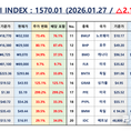 언론 통합 플랫폼이자 인터넷신문사 제보팀장을 운영 중인 더에이아이미디어는 1월 27일 NZSI INDEX 기반 시황 보고서를 발표했다. [편집자주] NZSI INDEX는 왜곡된 시장 정보에서 벗어나, 개인 투자자를 위한 공정하고 실질적인 투자 기준을 제시합니다. NZSI INDEX에는 미래를 설계할 수 있는 자본시장의 가능성이 담겨 있습니다. ★ 지수변경 : 1,000을 기준으로 종목 기여도 동일 반영 ★ 기 준 가 : 2024. 12. 20 / 1차 개편 : 2025. 04. 01 ★ 평가기준 : 20개 종목 X 5개 항목 (건전성, 안전성, 성장성, 위험도, 기대값) X 10등급 (A3 ~ D) 2026년 1월 27일 국내 증시는 전일의 혼조 흐름을 딛고 상승세를 보였다. 코스피 지수는 전 거래일 대비 2.73% 상승한 5,084.85포인트로 마감하며 5,000선을 넘어섰다. 코스닥 지수도 1.71% 오른 1,082.59포인트를 기록하며 상승 흐름을 이어갔다. 이날 거래대금은 코스피 약 28조 5천억 원, 코스닥 약 17조 6천억 원으로 집계됐고, 시가총액은 코스피 4,185조 7천억 원, 코스닥 581조 8천억 원으로 국내 주식시장 전체 규모는 연일 사