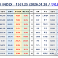언론 통합 플랫폼이자 인터넷신문사 제보팀장을 운영 중인 더에이아이미디어는 1월 28일 NZSI INDEX 기반 시황 보고서를 발표했다. [편집자주] NZSI INDEX는 왜곡된 시장 정보에서 벗어나, 개인 투자자를 위한 공정하고 실질적인 투자 기준을 제시합니다. NZSI INDEX에는 미래를 설계할 수 있는 자본시장의 가능성이 담겨 있습니다. ★ 지수변경 : 1,000을 기준으로 종목 기여도 동일 반영 ★ 기 준 가 : 2024. 12. 20 / 1차 개편 : 2025. 04. 01 ★ 평가기준 : 20개 종목 X 5개 항목 (건전성, 안전성, 성장성, 위험도, 기대값) X 10등급 (A3 ~ D) 2026년 1월 28일 국내 증시는 상승세를 이어갔다. 코스피 지수는 전 거래일 대비 1.69% 상승한5,170.81포인트로 마감했고, 코스닥 지수는 4.70% 급등한 1,133.52포인트를 기록했다. 이날 코스피 거래대금은 약 28조5천억 원, 코스닥은 약 17조 6천억 원으로 집계됐으며, 시가총액은 코스피 4,258조 2천억 원, 코스닥 609조 2천억 원으로 국내 주식시장 전체 규모는 연일 사상 최고치를 경신하는 흐름을 보였다. 해외 증시는 뚜렷한 방향성 없