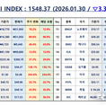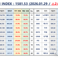언론 통합 플랫폼이자 인터넷신문사 제보팀장을 운영 중인 더에이아이미디어는 1월 29일 NZSI INDEX 기반 시황 보고서를 발표했다. [편집자주] NZSI INDEX는 왜곡된 시장 정보에서 벗어나, 개인 투자자를 위한 공정하고 실질적인 투자 기준을 제시합니다. NZSI INDEX에는 미래를 설계할 수 있는 자본시장의 가능성이 담겨 있습니다. ★ 지수변경 : 1,000을 기준으로 종목 기여도 동일 반영 ★ 기 준 가 : 2024. 12. 20 / 1차 개편 : 2025. 04. 01 ★ 평가기준 : 20개 종목 X 5개 항목 (건전성, 안전성, 성장성, 위험도, 기대값) X 10등급 (A3 ~ D) 2026년 1월 29일 국내 증시는 상승 흐름을 지속했다. 코스피 지수는 전 거래일 대비 0.98% 상승한 5,221.25포인트, 코스닥 지수는 2.73% 오른 1,164.41포인트로 마감했다. 이날 코스피 거래대금은 약 28조 5천억 원, 코스닥은 약 17조 6천억 원으로 집계됐으며, 시가총액은 코스피 4,297조 7천억 원, 코스닥 625조 8천억 원으로 국내 주식시장 전체 규모는 연일 사상 최고치를 경신했다. 해외 증시는 혼조세를 보였다. 미국 다우존스 산업