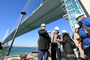유정복 인천시장이 제3연륙교 정식 개통을 엿새 앞둔 30일 현장을 방문해 공정 전반과 안전 상태를 점검하고 관계자들을 격려했다. 이번 현장 방문은 제3연륙교 본공사가 마무리 단계에 접어든 가운데, 내년 1월 5일 정식 개통을 앞두고 시설 전반을 직접 확인하기 위해 마련됐다. 유 시장은 교량 주요 구조물과 운영 준비 상황을 살펴보며 최종 점검에 만전을 기할 것을 당부했다. 총사업비 약 7700억원이 투입된 제3연륙교는 서울 도심과 인천국제공항을 최단거리로 연결하는 국가 핵심 교통 인프라로, 인천~서울 간 교통망을 완성하는 마지막 축으로 평가된다. 제3연륙교가 개통되면 영종국제도시와 청라국제도시, 수도권 서부 지역 간 접근성이 크게 개선돼 물류비 절감과 이동 편의 증대는 물론, 공항경제권 활성화와 투자 유치에도 긍정적인 효과가 기대된다. 제3연륙교는 지난 2021년 12월 착공 이후 48개월 만에 본공사를 마무리하며 당초 계획보다 6개월 앞당겨 완공됐다. 이는 효율적인 공정 관리와 첨단 공법 적용을 통해 국가 기간시설 건설의 모범 사례를 제시했다는 평가를 받고 있다. 시공 과정에서는 교량용 특수강재인 HSB를 주탑과 거더, 케이블 등에 적용하고, 대블록 설치와