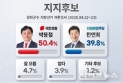 오는 6월 3일 지방선거를 앞두고 인천 강화군수 선거가 치열한 접전을 이어가고 있다. 여론조사 결과 국민의힘 박용철 후보가 더불어민주당 한연희 후보를 오차범위 밖에서 앞선 것으로 나타났다. 경인방송이 여론조사기관 한길리서치에 의뢰해 지난 22~23일 강화군 유권자 500명을 대상으로 실시한 조사에서 박 후보는 50.4%, 한 후보는 39.8%의 지지율을 기록했다. 두 후보 간 격차는 10.6%포인트로 오차범위(±4.4%p)를 벗어났다. 기타 후보 1.2%, 지지 후보 없음 3.9%, 모름·무응답은 4.7%로 집계됐다. 다만 세대별 지지 양상은 뚜렷하게 엇갈렸다. 30대(59.7%), 40대(58.4%), 50대(61.1%)에서는 박 후보가 강세를 보이며 중간 연령층에서 우위를 확보했다. 반면 20대에서는 한 후보가 47.7%로 박 후보(37.5%)를 앞섰고, 60대에서도 한 후보(49.1%)가 박 후보(44.9%)를 앞서는 이례적인 흐름이 나타났다. 70대 이상에서는 박 후보가 47.5%로 한 후보(39.5%)보다 높았지만, ‘모름’ 응답이 8.9%로 가장 높아 고령층 표심이 막판 변수로 작용할 가능성이 제기된다. 전체 판세는 박 후보가 안정적인 우위를 유지