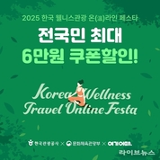 대한민국 대표 여행·여가 플랫폼 여기어때(대표 정명훈)가 문화체육관광부, 한국관광공사와 함께 ‘2025 웰니스관광 온라인 페스타’를 실시한다. 단순한 여행을 넘어 삶의 질을 높이는 치유 여행을 경험할 수 있도록 지원하는 이벤트다. 여기어때는 11월 1일부터 30일까지 웰니스 여행자를 대상으로 최대 6만원 할인 혜택을 선착순 제공한다. 해당 쿠폰은 웰니스 숙소와 체험 상품 이용 시 적용 가능하다. 할인 금액은 경기도 지역에서는 최대 6만원, 이외 지역은 5만원을 지원한다. 쿠폰 사용 및 체크인 기간은 발급 기간과 동일하다. 자세한 내용은 여기어때 이벤트 페이지에서 확인할 수 있다. 강희경 여기어때 제휴마케팅전략팀장은 “최근엔 힐링을 키워드로 떠나는 웰니스 여행에 대한 관심이 높아지고 있다”며 “심신을 안정시키는 치유 여행을 떠나고 싶다면 이번 웰니스 페스타에 꼭 참여해 볼 것을 추천한다”고 전했다.