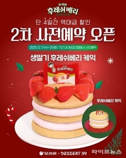 디저트39가 국내 대표 제과 브랜드 오리온과 협업해 선보인 ‘후레쉬베리 케익’ 2차 사전 예약을 진행한다. 이번 사전 예약은 12월 17일(수)부터 20일(토)까지 단 4일간 디저트39 오더앱을 통해서만 만나볼 수 있다. 이번에 출시된 후레쉬베리 케익은 오리온의 스테디셀러 ‘후레쉬베리’를 케익으로 재해석한 콜라보 제품으로, 부드러운 시트와 상큼한 크림, 딸기의 조화를 살린 것이 특징이다. 2차 사전예약 기간 동안 ‘생딸기 후레쉬베리 케익’ 및 ‘후레쉬베리 케익’ 모두 정상가에서 6,000원 할인된 가격에 제공된다. 해당 할인 혜택은 사전예약 기간 4일동안만 적용되는 한정 프로모션이다. 디저트39 관계자는 “더 많은 고객들이 부담 없이 후레쉬베리 케익을 경험할 수 있도록 2차 사전예약을 마련했다”며 “연말 시즌을 맞아 합리적인 가격의 디저트를 찾는 고객들에게 좋은 선택지가 될 것”이라고 밝혔다. 한편 후레쉬베리 케익은 한정 제품으로 전국 매장에 소량만 입고되어 매장별로 조기 마감될 수 있다.