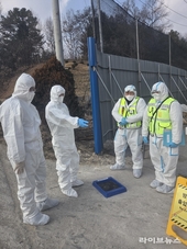 가축위생방역지원본부(본부장 김태환)는 1월 강원 강릉, 경기 안성, 포천 및 전남 영광 지역에서 아프리카돼지열병(ASF)이 발생함에 따라 질병 확산 차단을 위한 초동방역 인력을 신속히 투입해 현장 대응에 총력을 기울이고 있다. 최근 한파주의보가 계속 발령된 상황에서도 위생방역본부 초동방역 직원들은 현장에서 발생농가에 출입하는 사람, 차량에 대해 이동 통제 등 방역 업무를 수행하고 있으며, 특히 업무수행 중 발생할 수 있는 저체온증, 동상 등 건강장해를 예방하기 위해 직원 보호 차량 투입, 방한용품 지급, 한파안전 5대 수칙 교육 등 선제적 안전조치를 실시했다. 위생방역본부는 이를 통해 가축질병 대응 과정의 안전사고발생과 장시간 야외근무에 따른 건강장해 등 건강 위험요인을 사전에 관리하는 등 예방 중심의 중대재해 안전관리 체계를 운영하고 있다. 김태환 본부장은 “가축질병 대응에 있어, 현장에서 방역임무를 수행하는 직원의 안전과 건강은 최우선 요소”라며, “위생방역본부는 가축질병 대응을 위해 힘써주는 초동방역 직원에 현장에서의 위험요인 사전 예방 중심의 안전관리를 강화해 사고 없는 방역 현장을 만들어 가겠다.”고 밝혔다.
