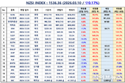 언론 통합 플랫폼이자 인터넷신문사 제보팀장을 운영 중인 더에이아이미디어는 3월 10일 NZSI INDEX 기반 시황 보고서를 발표했다. [편집자주] NZSI INDEX는 왜곡된 시장 정보에서 벗어나, 개인 투자자를 위한 공정하고 실질적인 투자 기준을 제시합니다. NZSI INDEX에는 미래를 설계할 수 있는 자본시장의 가능성이 담겨 있습니다. ★ 지수변경 : 1,000을 기준으로 종목 기여도 동일 반영 ★ 기 준 가 : 2024. 12. 20 / 1차 개편 : 2025. 04. 01 ★ 평가기준 : 20개 종목 X 5개 항목 (건전성, 안전성, 성장성, 위험도, 기대값) X 10등급 (A3 ~ D) 2026년 3월 10일 국내 증시는 큰 폭으로 반등했다. 코스피 지수는 전 거래일 대비 5.35% 상승한 5,532.59포인트로 마감했고 코스닥 지수 역시 3.21% 오른 1,137.68포인트를 기록했다. 거래대금은 코스피 28조 6천억 원, 코스닥 15조 원 수준을 기록했으며 시가총액은 코스피 4,549조 5천억 원, 코스닥 614조 5천억 원으로 집계됐다. 상승 폭은 컸지만 시가총액 기준으로 보면 최근 급락 이전 수준을 완전히 회복한 것은 아니며 여전히 변동성